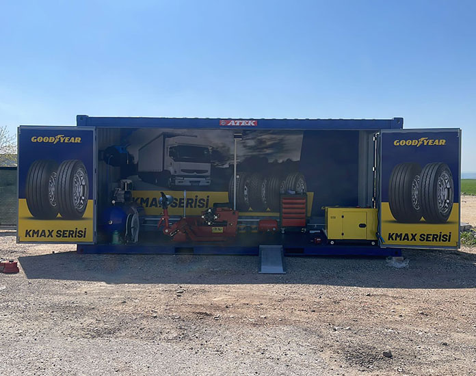 İlk planda Kahramanmaraş ve Hatay’da kurulan Goodyear Fleetbox’lar, kamyon-ağır vasıta araçlara yönelik lastik servisi hizmeti anlamında sektörde bir ilk olarak dikkat çekiyor.