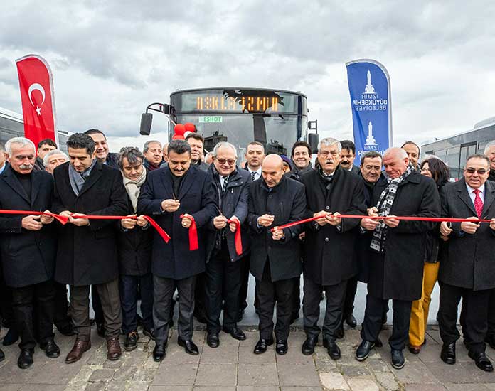 Koç Topluluğu şirketlerinden Otokar, Türkiye’nin dört bir yanında belediyelerin toplu taşıma filolarını yenilikçi ve çevre dostu araçlarıyla güçlendirmeye devam ediyor. Ülkemizin yanı sıra İspanya’dan Almanya’ya, Fransa’dan Belçika ve İtalya’ya kadar dünyanın 50’den fazla ülkesinde 35 binden fazla otobüsü ile milyonlarca yolcuya konforlu, güvenli seyahat imkânı sunan Otokar, 2019 yılının son teslimatını ESHOT’a yaptı. Alsancak Cumhuriyet Meydanı’nda düzenlenen 15 adet KENT otobüsünün teslimat töreni İzmir Büyükşehir Belediye Başkanı Tunç Soyer, İzmir Büyükşehir Belediyesi Genel Sekreteri Buğra Gökçe, ESHOT Genel Müdürü Erhan Bey ve Otokar Genel Müdürü Serdar Görgüç‘ün katılımıyla gerçekleşti.